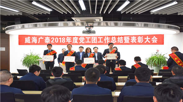 会上,陈苗同志首先作题为《实处着力,为企业扬帆护航》的党工团2018年度工作总结报告,对党工团2018年各项工作做了系统全面的总结。随后,王庆东同志宣读公司党委《关于表彰2018年度党工团先进集体和个人的决定》,对表现突出的党支部、支部书记、党员、工会工作者、团务工作者以及获得省、市、区、镇各级奖励的先进集体和个人进行了嘉奖,并号召广大党员、工会会员、青年团员继续发挥模范带头作用,为公司的科研、生产、管理和企业文化建设等全面发展做出积极贡献。